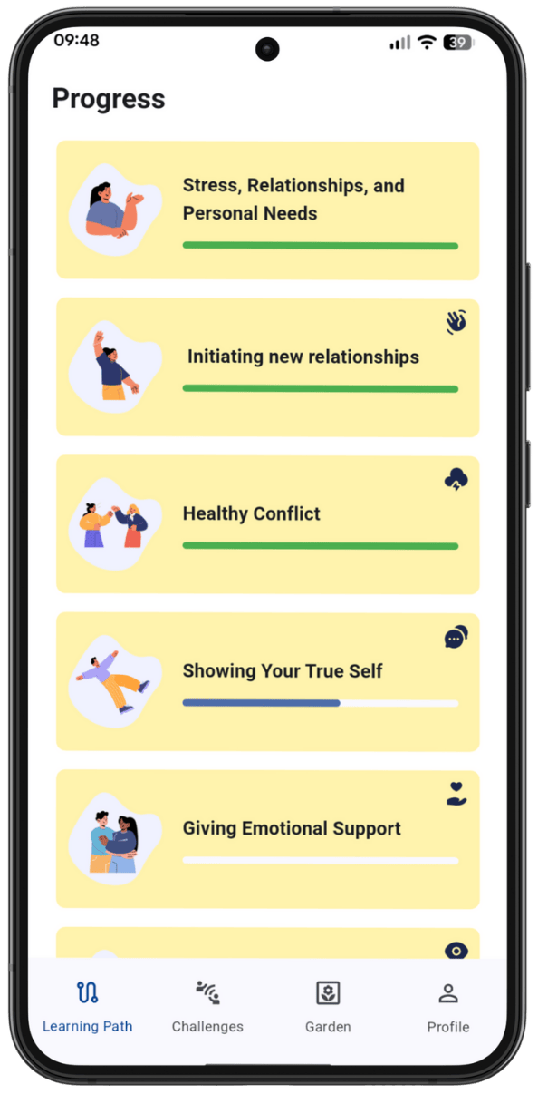 Lerne die richtigen Strategien, um endlich dazuzugehören. Unsere App begleitet dich aus der Komfortzone heraus und hilft dir erfüllende Beziehungen aufzubauen.